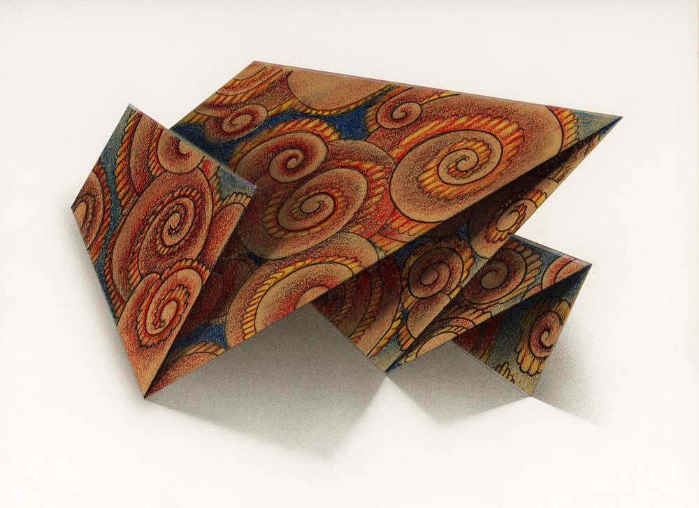Note: This artwork is hand-painted on artist-quality paper, cut out, and mounted on a panel. Airbrushed shadows enhance the illusion of folded depth, though the surface itself is entirely two-dimensional.