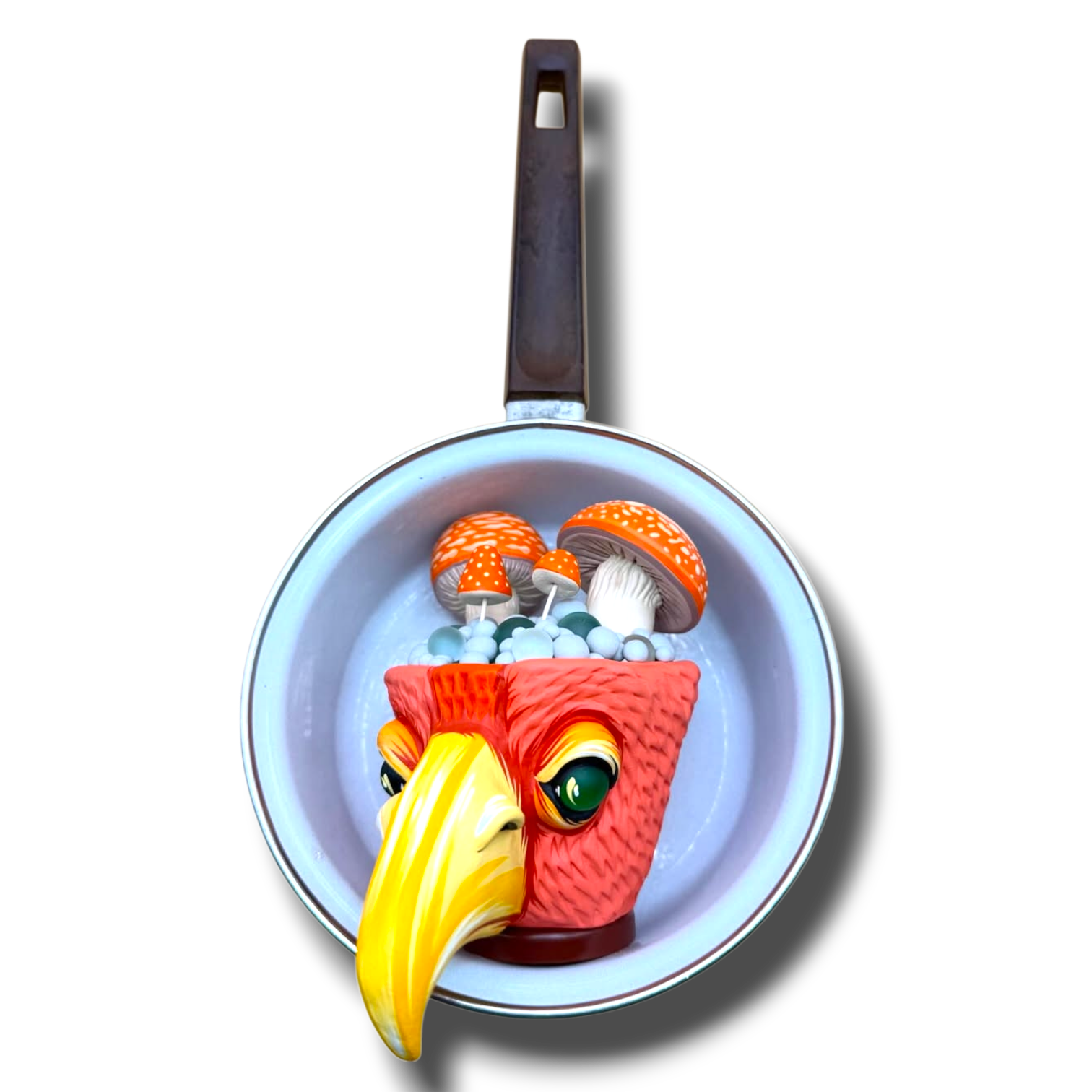 Apoxy sculpt, wire, acrylic, gouache, enamel pot