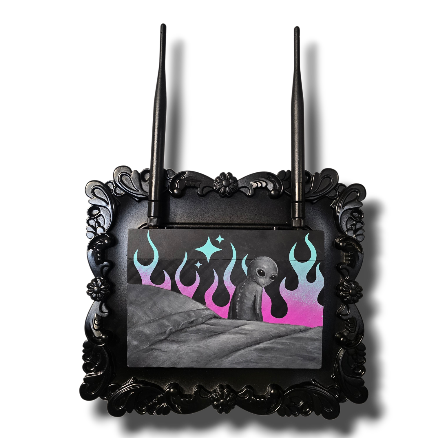 acrylic on router, framed